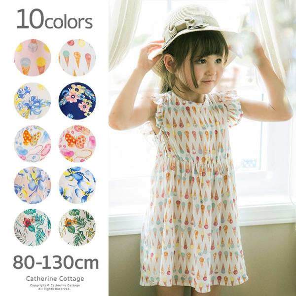 キッズ100 130 メール便可 子供服 ワンピース さくらんぼ 袖フリル ノースリーブ 女の子 100cm 110cm 1cm 130cm Coca コカ 16 02 ジュニア 膝丈 ロング丈 ロングワンピース フレア Aライン ラウンドネック サクランボ ボタニカル ブラウジング Coca